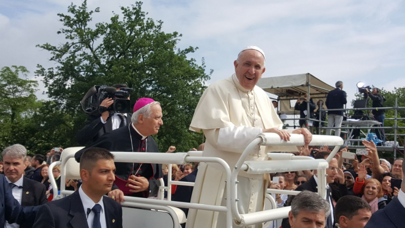 Papa Francisco chegou puntualmente à cidadela dos Focolares às 10h recebido por Maria Voce, presidente do Movimento; Jesús Morán, copresidente, e pelo Bispo de Fiesole D. Mario Meini. Depois de uma breve pausa de oração dentro do santuário, encontrou os 850 habitantes de Loppiano, provenientes de 65 nações e as milhares de pessoas vindas de toda a Itália e além na maioria pertencentes ao Movimento dos Focolares.